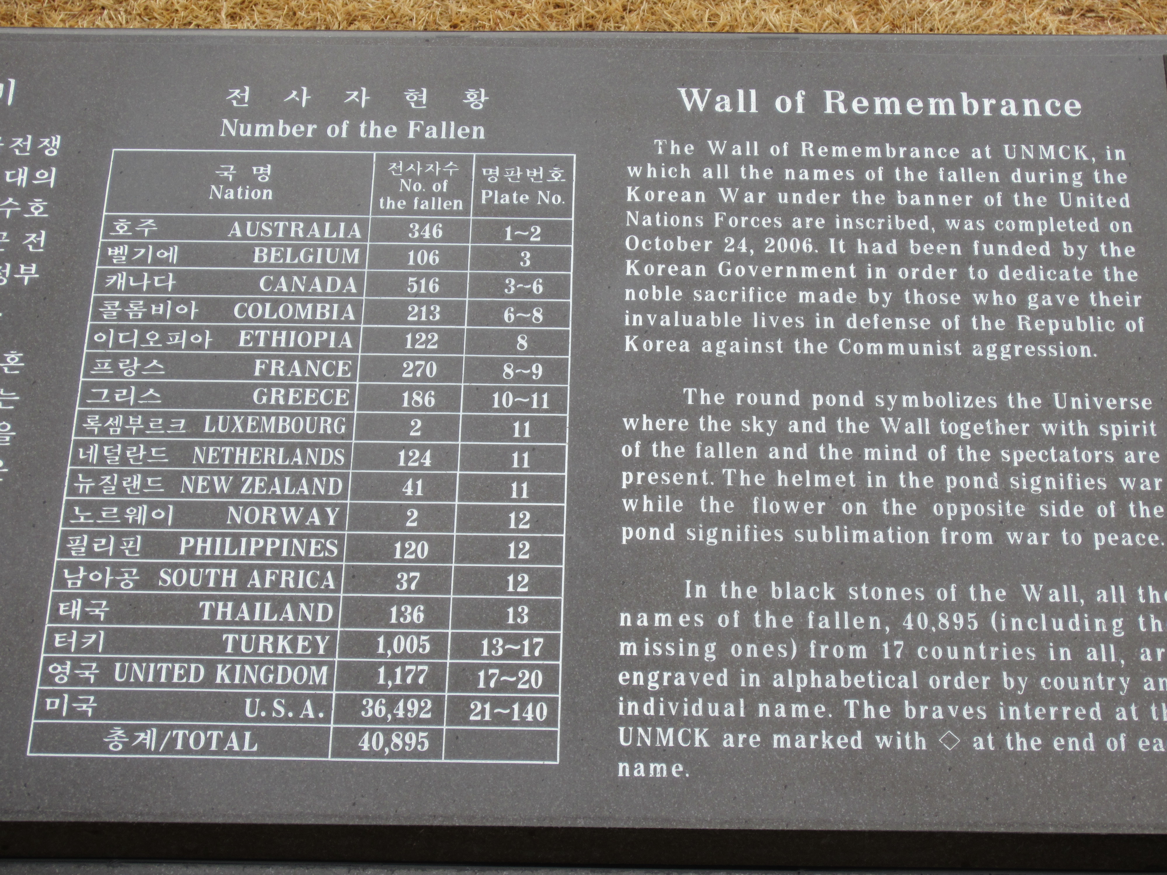 Memorial wall engraved with all the names of the soldiers who lost their lives during the Korean War