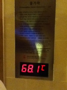 But let’s talk about “good naked” and “bad naked” for a minute.  Here is what I learned on that subject:  Operating a vending machine naked…bad naked.  75 year old women walking around…bad naked.  Well let’s be honest, there was a whole lot of “bad naked” going on in there.   But the harsh reality is that my American conservativeness towards nudity has trained me to see it as “bad”, not that it actually was.  On the contrary, I left there appreciating their lack of shame.  I will go to great lengths to avoid being seen in a swim suit in certain company, so I could use some of that.  For obvious reasons, I did not take pictures in that area, but I did snap one in the common areas to show you how freaking HOT these rooms were.
