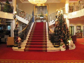 When we got off the train in Tullamore we walked over to our hotel, The Bridge House, and along the way we saw a whole slew of uniformed school children playing in the school yard and a beautiful little town all around us! We walked into our hotel and found it to be pretty posh with a grand staircase greeting us at the door. It looks like a pace where you would see people getting married.