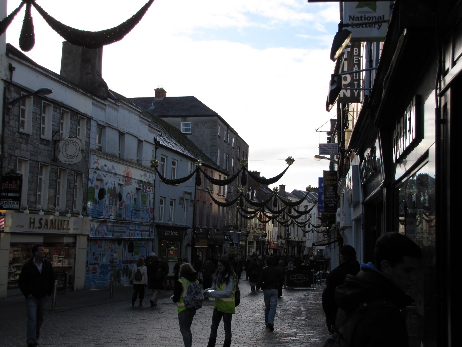 Whew! What a crazy couple of days! It’s about 7:15 PM here and we are on a bus from Galway to Dublin and it is snowing like crazy!! It’s ironic because Natalie and I were discussing whether they got much snow here and I am looking at about 2 inches that have fallen in the last hour. I am now completely happy that we decided not to rent a car. The pubic transportation here is amazing. Just as an example, I am on a bus with free wifi access. Sweet!!Okay, back to the task at hand. Let’s talk about our Thanksgiving day in Galway. We woke up fairly early without a single plan in mind. We just knew that we wanted to walk around this great city all day and get to see most everything it has to offer. There are many pedestrianized streets in Galway and shopping for Christmas was in full force. While I think most Americans use Thanksgiving as the starting date for Christmas shopping, they are already in full swing over here. Hundred of locals were pouring in and out of the boutiques lined up along Shop street (not the most creative name…).