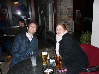 So we settled in for a serious game of beer pong and found ourselves in a very happy state. It was about 10:45 and we were discussing the drinking nature of Dublin and Natalie came to conclusion that we could drink late into the evening. I had started to notice that people were staring to clear out of the bar, so while Natalie was climbing keg mountain…