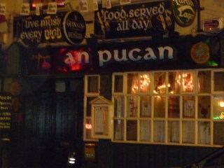 The bar she had suggested was called An Pucan and featured a great two man irish band sitting in the corner of a dimly lit pub. In the back they had a larger restaurant with a small dance floor in front. We listened to the band and grabbed some dinner. After a while we were starting to wonder about the dancing we were promised, but then from the back room we heard a loud clickity-clack sound. We ran back there and found a pair of young men gettin’ all Riverdanced out!!