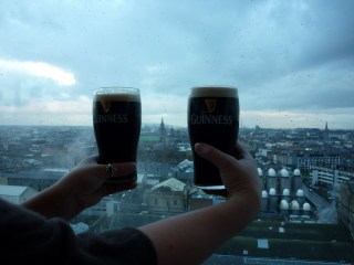 The icing on the cake was when we got to the top floor where we were invited to have a free pint of beer at the Gravity bar. The Gravity bar is a glass room at the top of the storehouse that features 360 degree views of Dublin. After grabbing a few pics we headed back to the hotel to dry out and freshen up before dinner.
